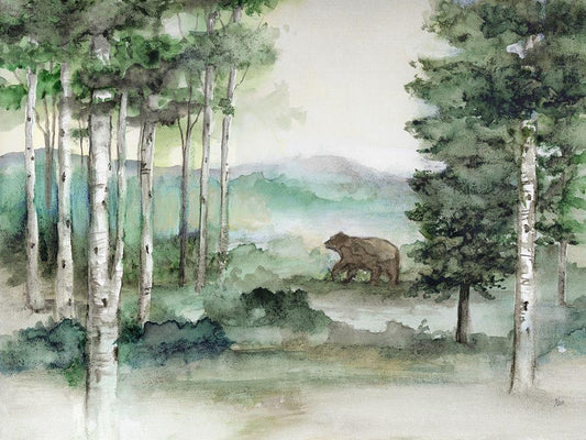 Mountain Bear White Modern Wood Framed Art Print with Double Matting by Craven, Katrina