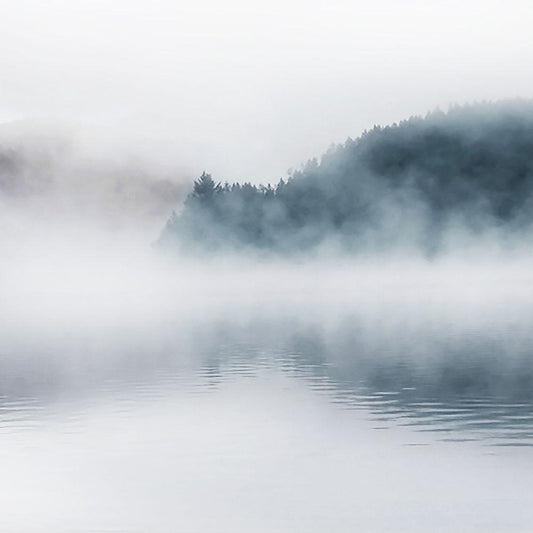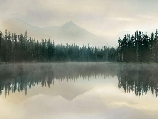 Misty Lake White Modern Wood Framed Art Print with Double Matting by Robinson, Carol