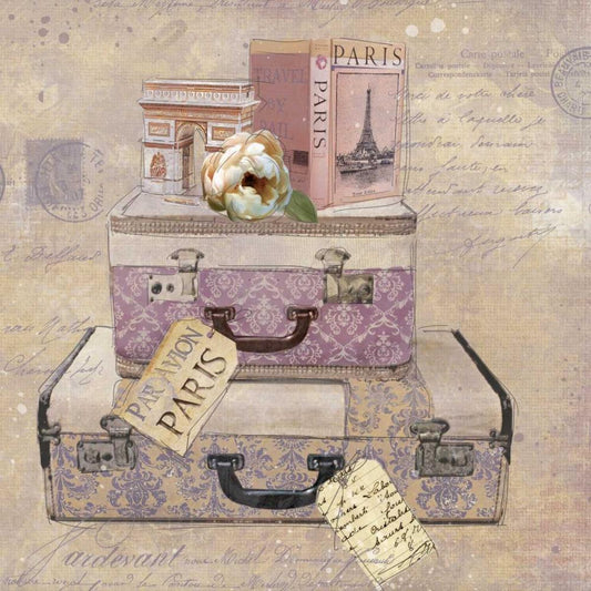 Trip to Paris I White Modern Wood Framed Art Print with Double Matting by Robinson, Carol