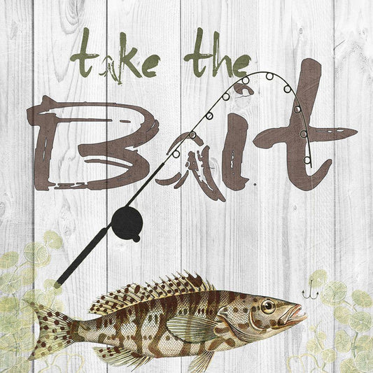 Take the Bait White Modern Wood Framed Art Print with Double Matting by Lewis, Sheldon
