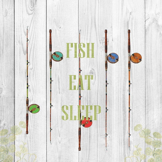 Fish Eat Sleep White Modern Wood Framed Art Print with Double Matting by Lewis, Sheldon