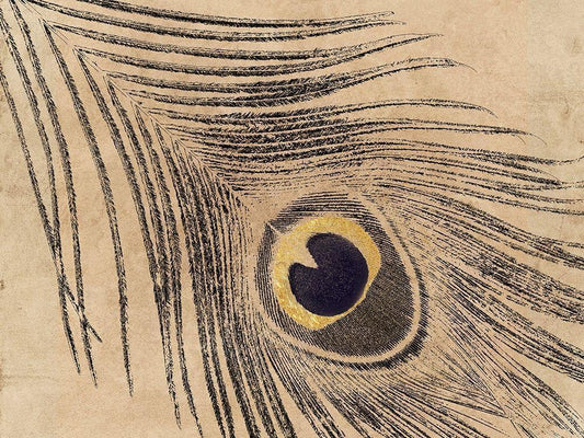 Gold Line Peacock White Modern Wood Framed Art Print with Double Matting by Lewis, Sheldon