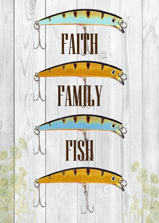 Faith Family Fish White Modern Wood Framed Art Print with Double Matting by Lewis, Sheldon