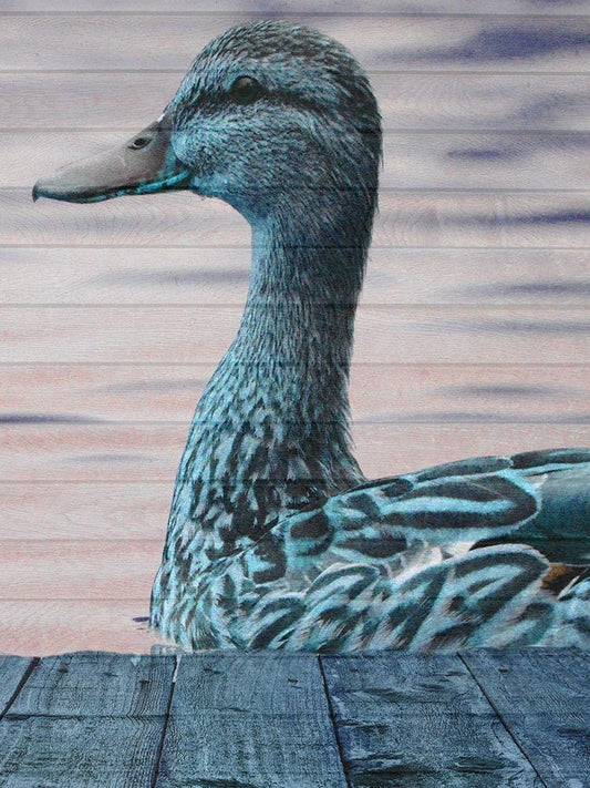 Aqua Duck White Modern Wood Framed Art Print with Double Matting by Lewis, Sheldon