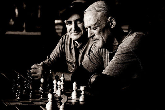 The Chess Player White Modern Wood Framed Art Print with Double Matting by SC