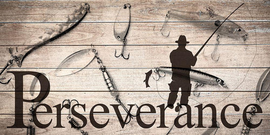 Perseverance Fishing White Modern Wood Framed Art Print with Double Matting by Allen, Kimberly