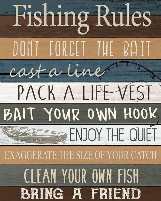 Fishing Rules White Modern Wood Framed Art Print with Double Matting by Allen, Kimberly