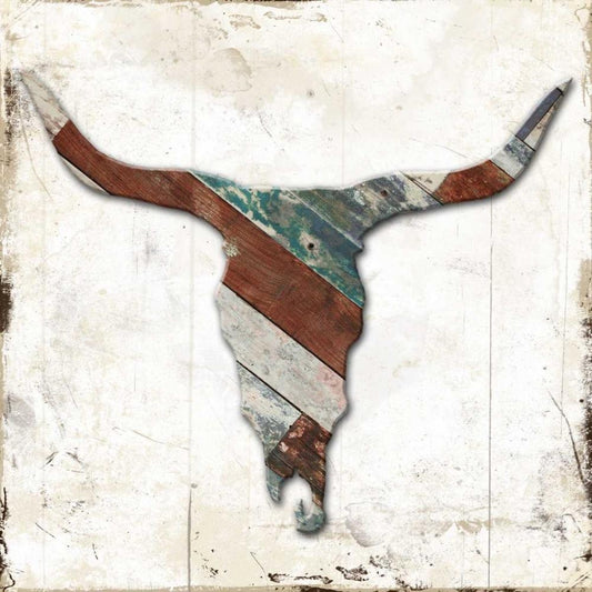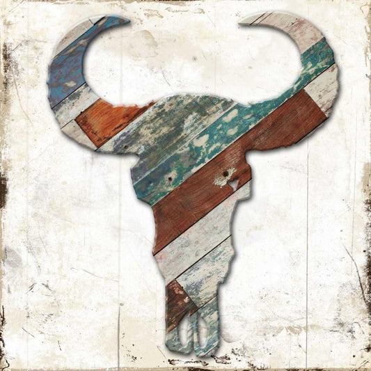 Wooden Bull Head White Modern Wood Framed Art Print with Double Matting by Grey, Jace