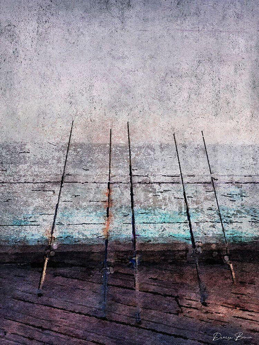 Pier Fishing White Modern Wood Framed Art Print with Double Matting by Brown, Denise