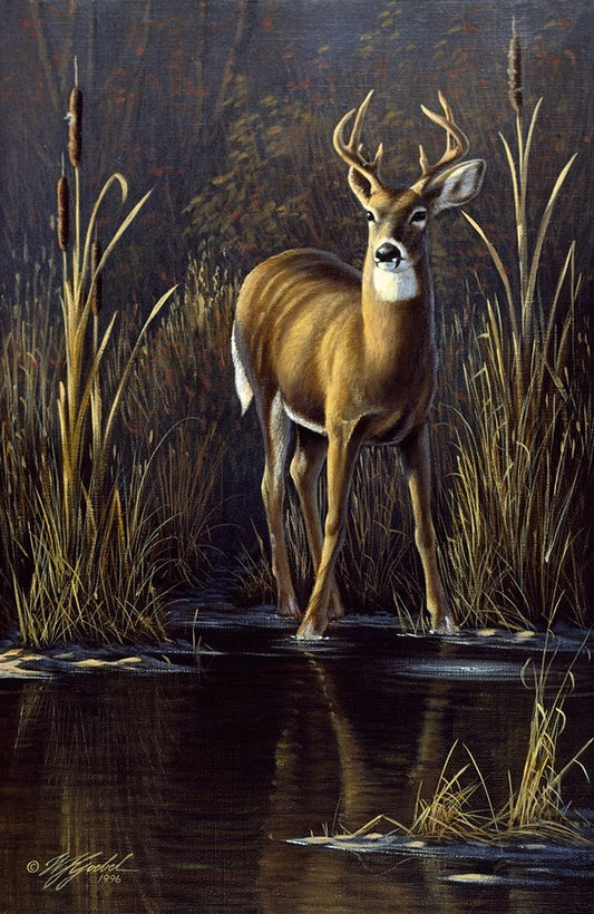 Whitetail Buck White Modern Wood Framed Art Print with Double Matting by Goebel, Wilhelm