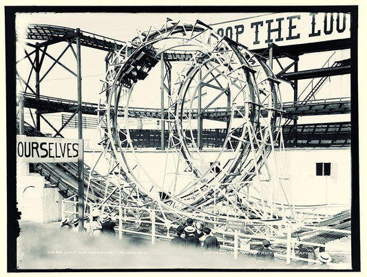 Vintage Coney Island White Modern Wood Framed Art Print with Double Matting by Vintage Apple Collection