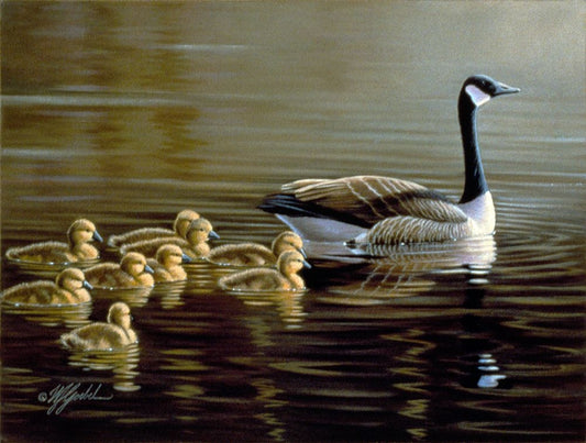 Mallard Ducklings White Modern Wood Framed Art Print with Double Matting by Goebel, Wilhelm