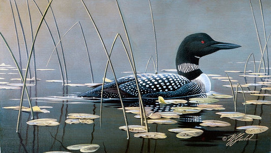 Loon In Reeds White Modern Wood Framed Art Print with Double Matting by Goebel, Wilhelm
