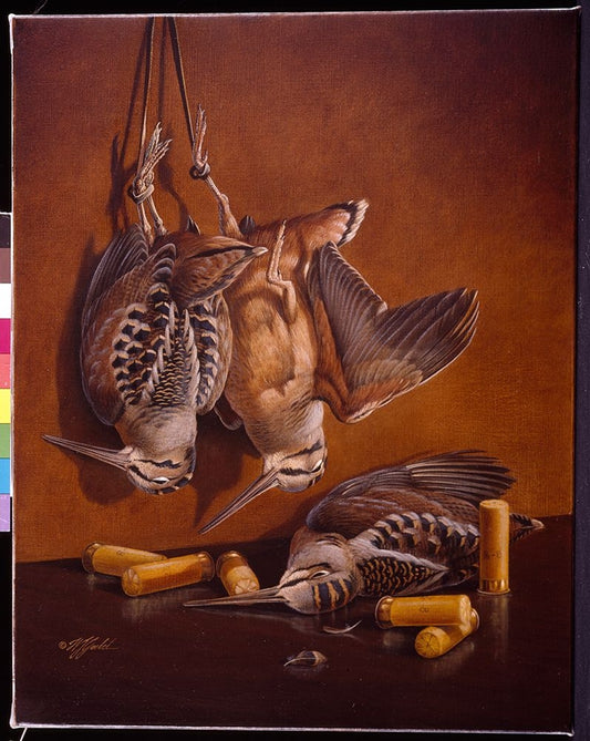 Woodcock Among The Leaves White Modern Wood Framed Art Print with Double Matting by Goebel, Wilhelm