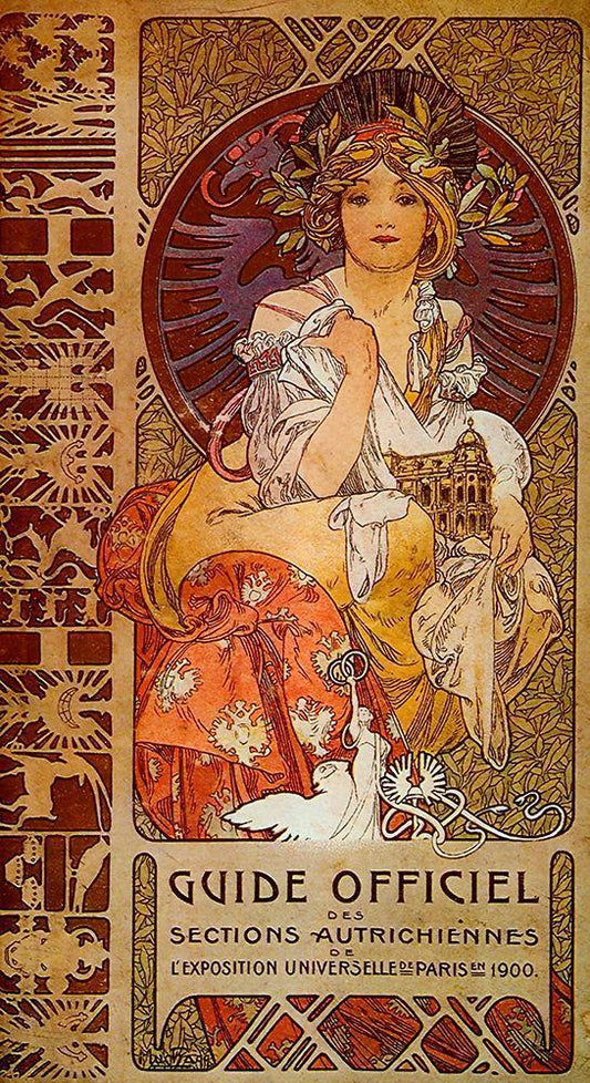 Mucha Guide Officiel White Modern Wood Framed Art Print with Double Matting by Vintage Apple Collection