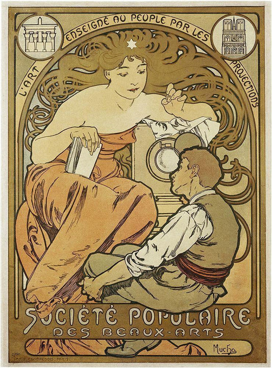 Mucha Societe Populaire White Modern Wood Framed Art Print with Double Matting by Vintage Apple Collection