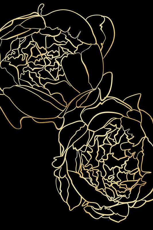 Sallys peonies in gold and black White Modern Wood Framed Art Print with Double Matting by Laiz Blursbyai, Rosana