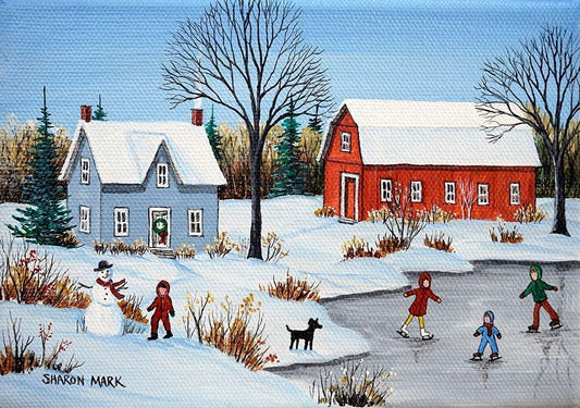 Skating Fun White Modern Wood Framed Art Print with Double Matting by Mark, Sharon