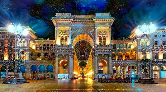 Milan Italy Vitorio Emanuel II Night 2022 White Modern Wood Framed Art Print with Double Matting by Gavidia, Pedro