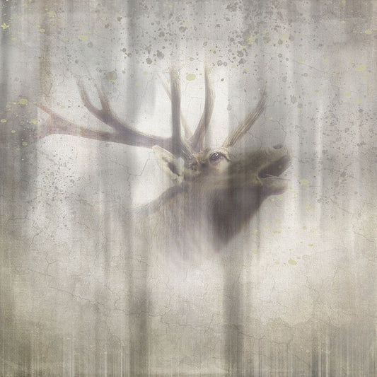 Antique Wildlife Elk White Modern Wood Framed Art Print with Double Matting by LightBoxJournal