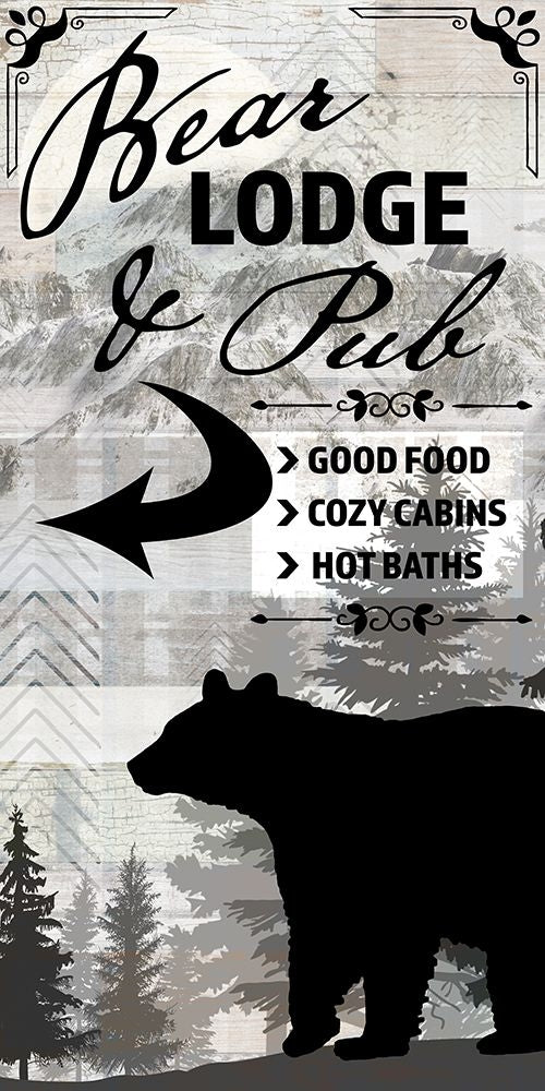 Blue Bear Lodge Sign 08 White Modern Wood Framed Art Print with Double Matting by LightBoxJournal