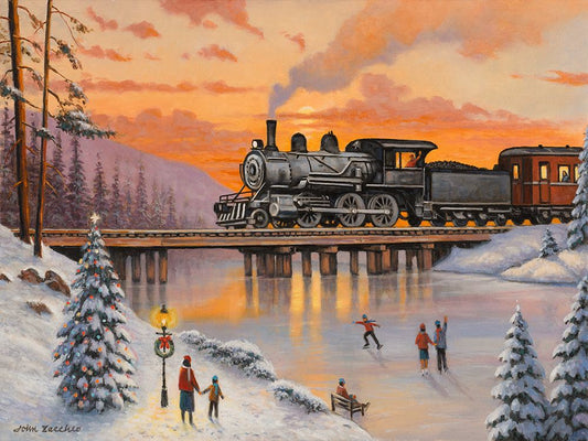 Railroad on the Ice Bridge White Modern Wood Framed Art Print with Double Matting by Zaccheo, John