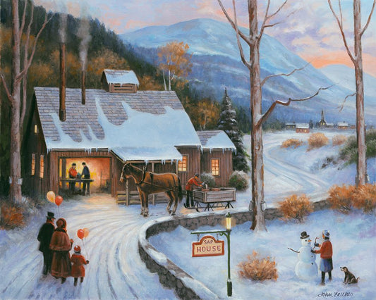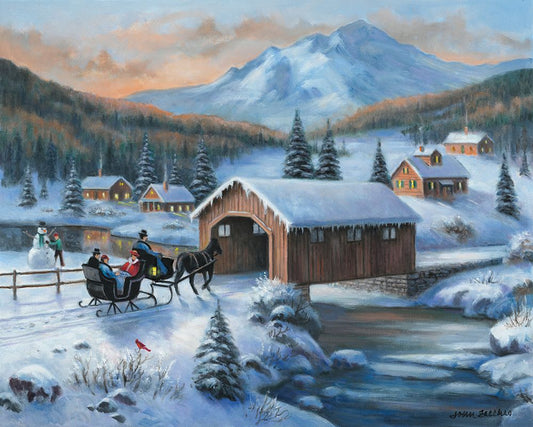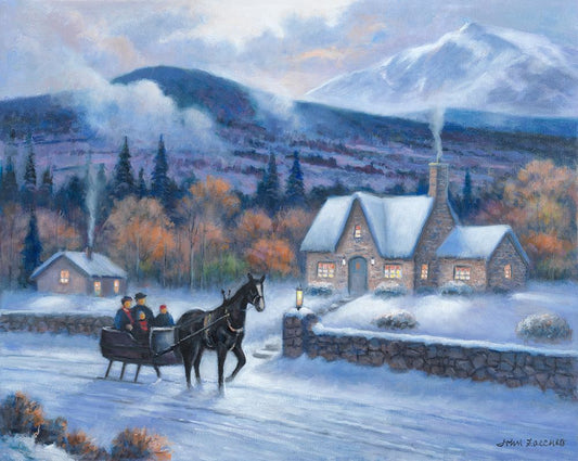 Sleighride Home White Modern Wood Framed Art Print with Double Matting by Zaccheo, John