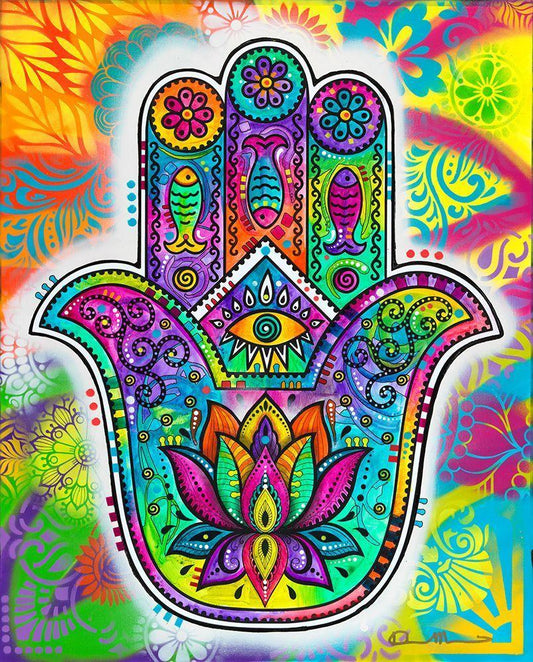 Hamsa 2 White Modern Wood Framed Art Print with Double Matting by Dean Russo Collection