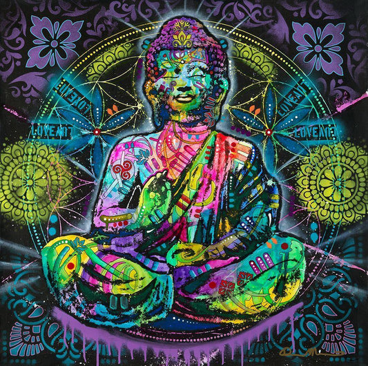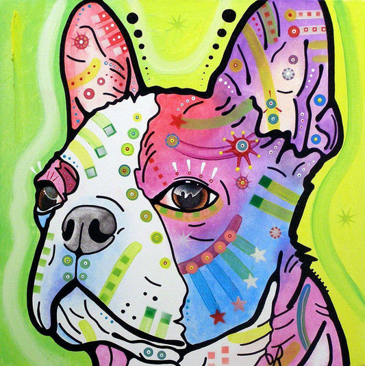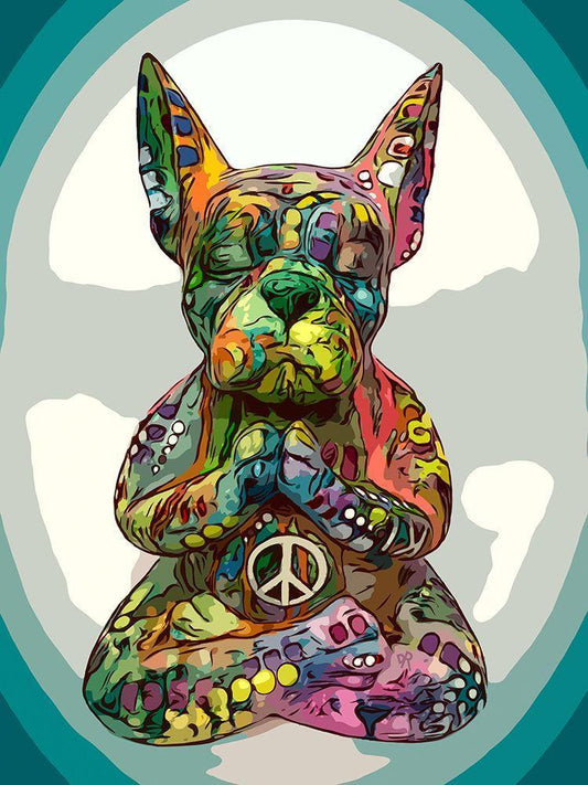 French Buddha Bulldog White Modern Wood Framed Art Print with Double Matting by Dean Russo Collection