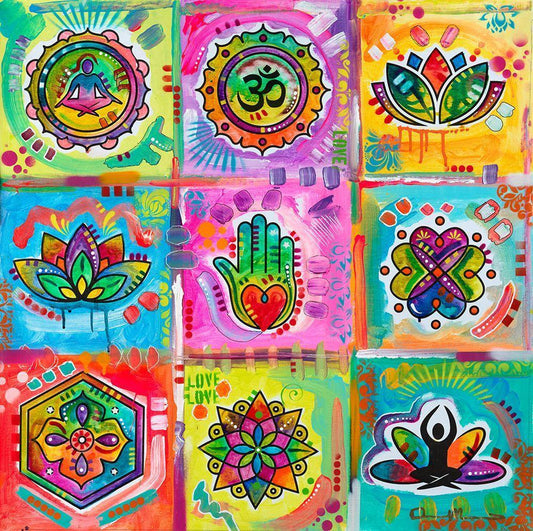Meditation Squares White Modern Wood Framed Art Print with Double Matting by Dean Russo Collection