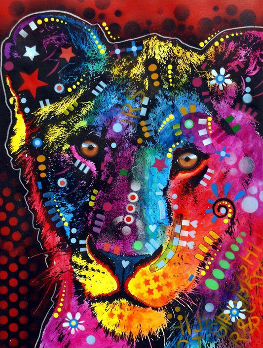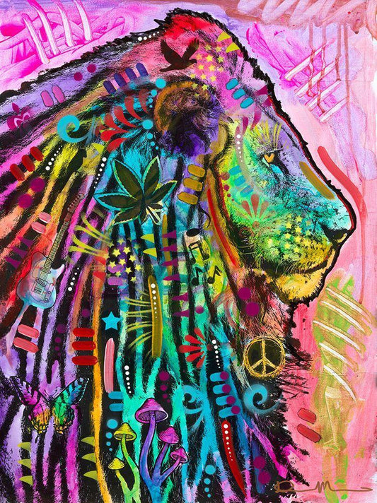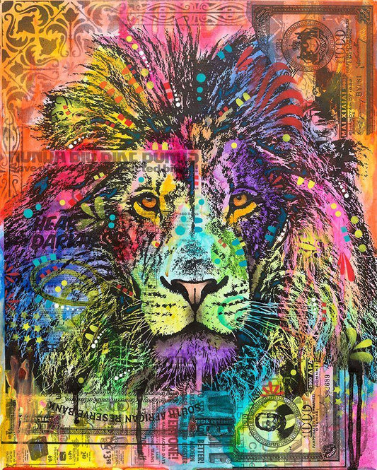 Syco-Delic Lion White Modern Wood Framed Art Print with Double Matting by Dean Russo Collection
