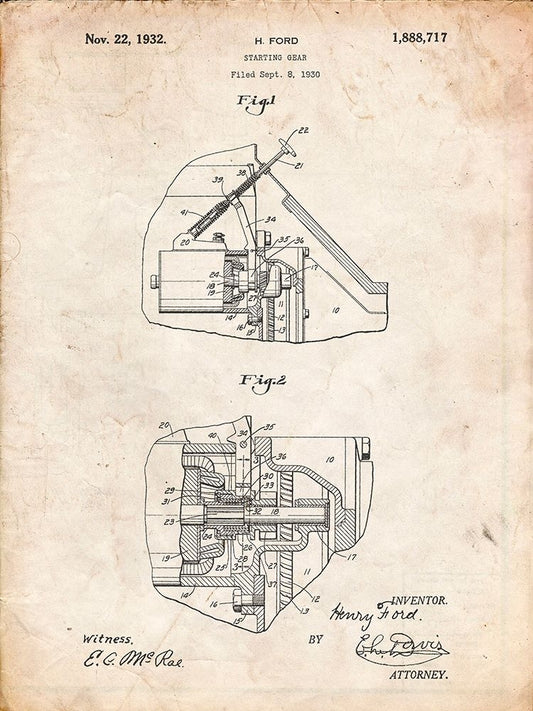 PP834-Vintage Parchment Ford Car Starter Patent Poster White Modern Wood Framed Art Print with Double Matting by Borders, Cole