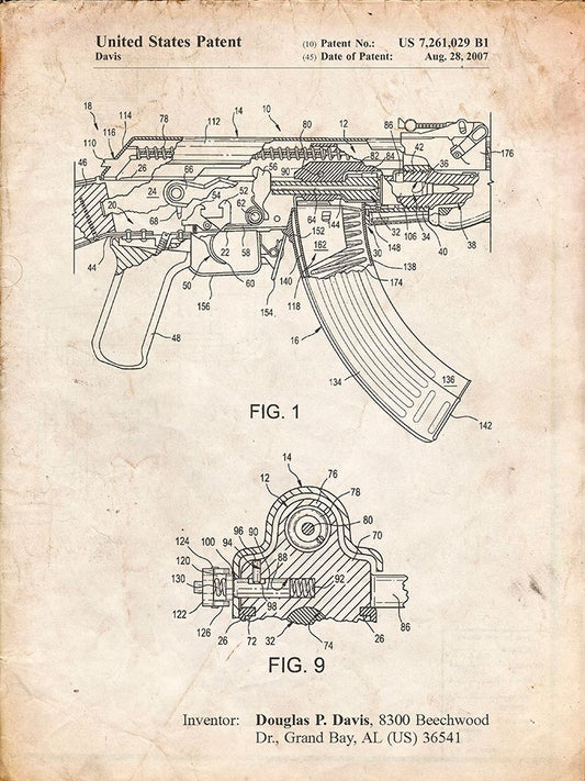 PP701-Vintage Parchment Ak-47 Bolt Locking Patent Print White Modern Wood Framed Art Print with Double Matting by Borders, Cole