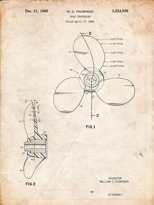 PP746-Vintage Parchment Boat Propeller 1964 Patent Poster White Modern Wood Framed Art Print with Double Matting by Borders, Cole