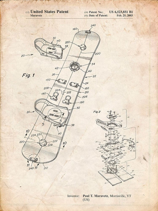 PP760-Vintage Parchment Burton Touring Snowboard Patent Poster White Modern Wood Framed Art Print with Double Matting by Borders, Cole