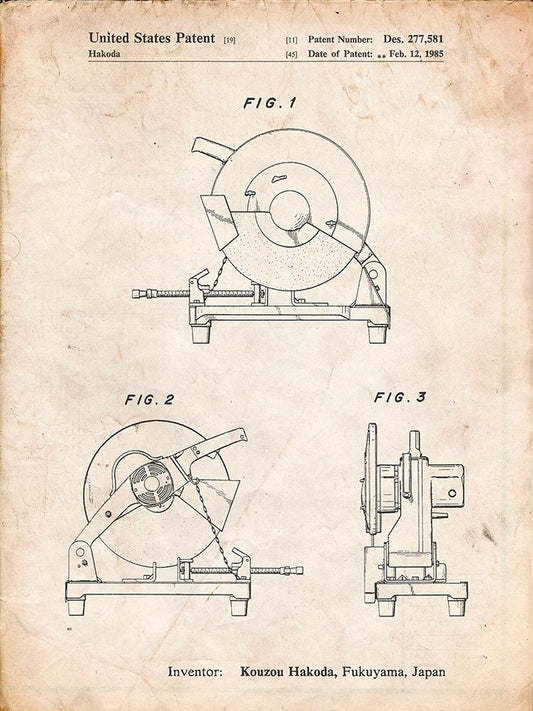 PP762-Vintage Parchment Chop Saw Patent Poster White Modern Wood Framed Art Print with Double Matting by Borders, Cole
