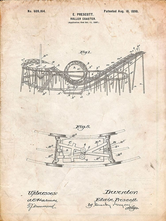 PP772-Vintage Parchment Coney Island Loop the Loop Roller Coaster Patent Poster White Modern Wood Framed Art Print with Double Matting by Borders, Cole