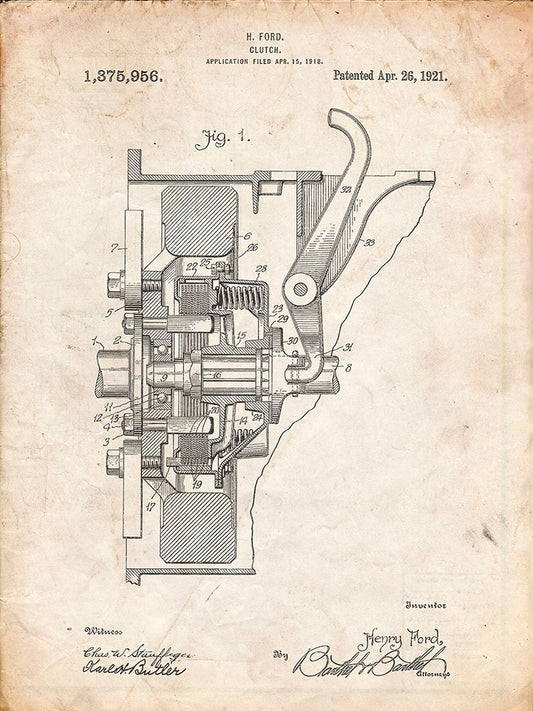 PP836-Vintage Parchment Ford Clutch Patent Poster White Modern Wood Framed Art Print with Double Matting by Borders, Cole