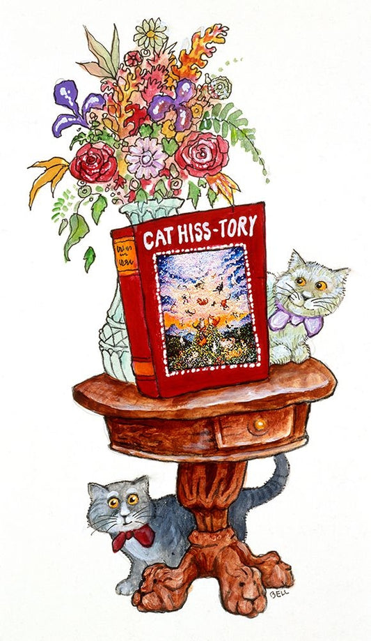 Cat Hiss-Tory Stand White Modern Wood Framed Art Print with Double Matting by Bell, Bill