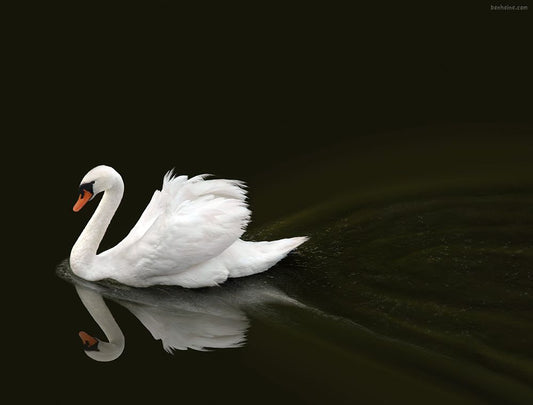 Swan 1 White Modern Wood Framed Art Print with Double Matting by Heine, Ben
