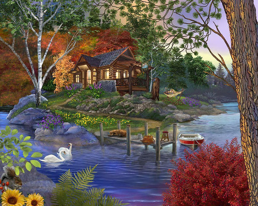 Memory Lake White Modern Wood Framed Art Print with Double Matting by Bigelow Illustrations- Exclusive