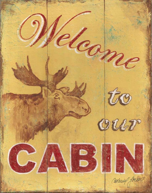 Cabin Welcome White Modern Wood Framed Art Print with Double Matting by Jones, Catherine