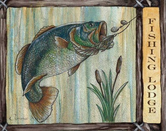 Lodge Fish White Modern Wood Framed Art Print with Double Matting by Knold, Donna