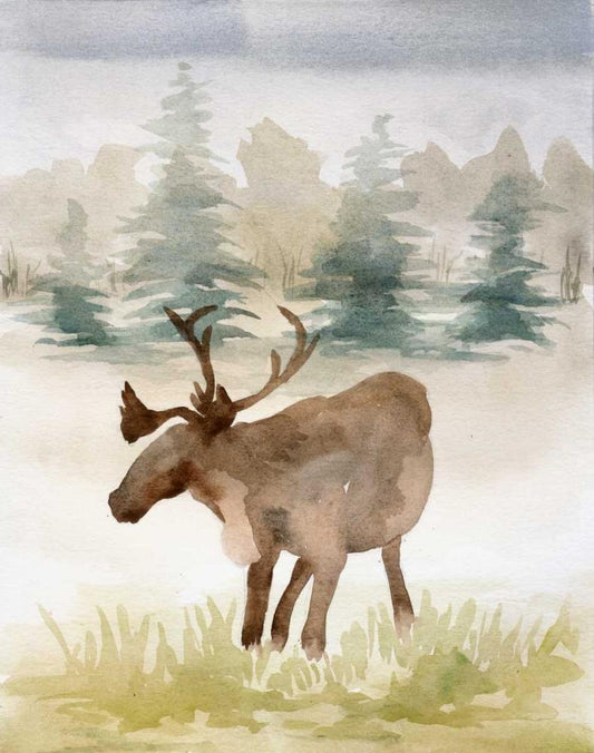 Lodge Moose White Modern Wood Framed Art Print with Double Matting by Knold, Donna