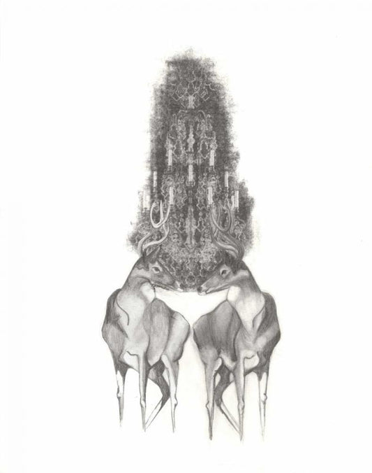 Deer I White Modern Wood Framed Art Print with Double Matting by Adkin, Arielle