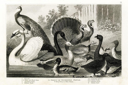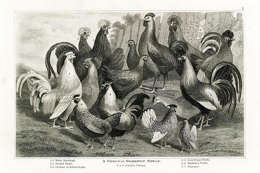 1800s Poultry Chart White Modern Wood Framed Art Print with Double Matting by Babbitt, Gwendolyn