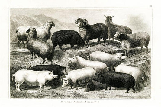 1800s Sheep and Pig Chart White Modern Wood Framed Art Print with Double Matting by Babbitt, Gwendolyn