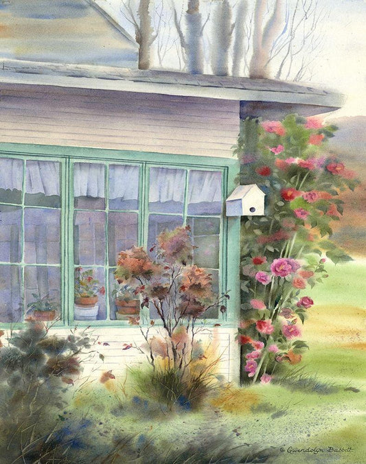 Mckenzie Houses and Camellias White Modern Wood Framed Art Print with Double Matting by Babbitt, Gwendolyn