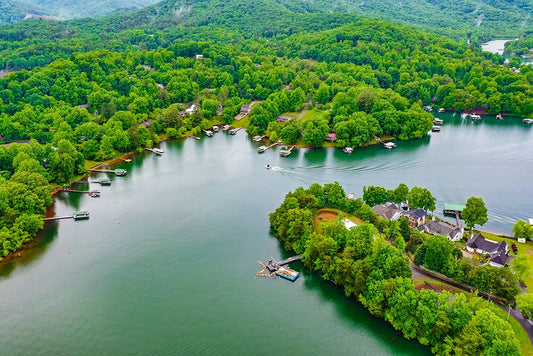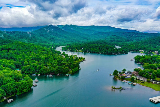 Lake Chatuge Aerial White Modern Wood Framed Art Print with Double Matting by Malone, Will
