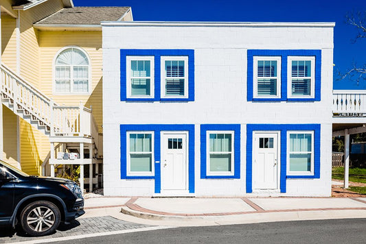 The Blue Beach House 2 White Modern Wood Framed Art Print with Double Matting by Malone, Will